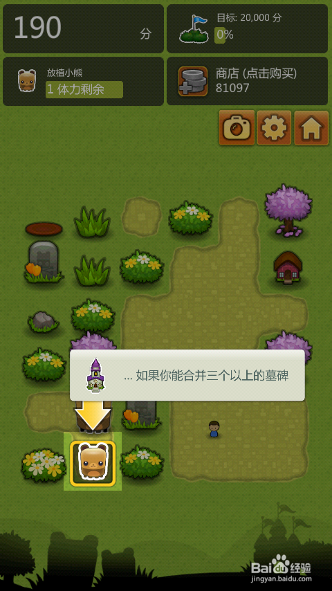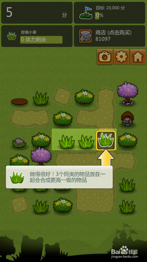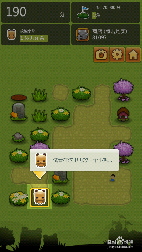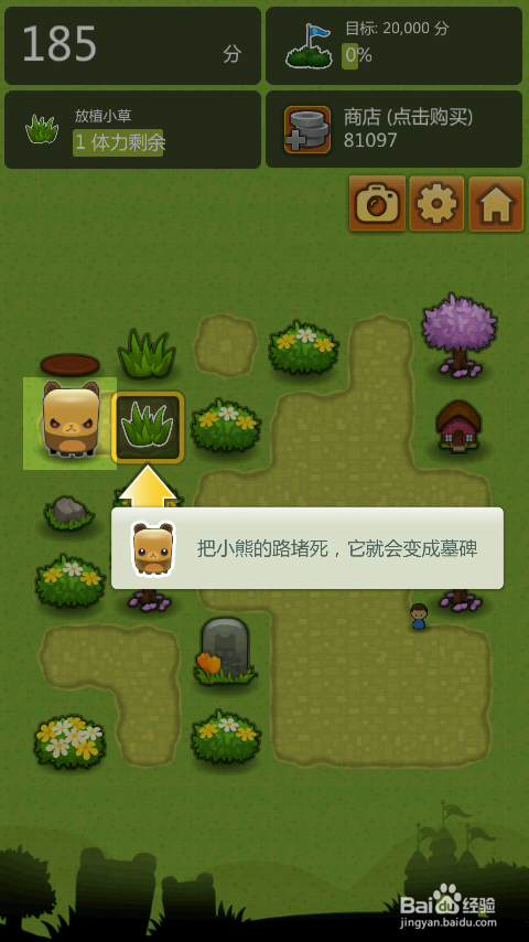 一、三重小鎮(zhèn)高分秘籍1.打開(kāi)游戲,綠色的游戲界面映入眼簾,可愛(ài)的小熊,小草,大樹(shù)等待您的種植。好啦,初始頁(yè)面的局勢(shì)已經(jīng)設(shè)置好,下面就是發(fā)揮自己智慧的時(shí)候啦。