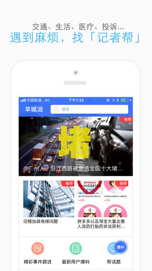 派,是行動派。羊城派的針尖產(chǎn)品“記者幫”,主打消費(fèi)維權(quán)、公共服務(wù)協(xié)調(diào)及政務(wù)服務(wù)溝通。家里水管爆了沒人修?詐騙短信好煩人?地鐵何時(shí)才能開到家門口?只要輕點(diǎn)羊城派首頁下方的“+”號,輸入問題并點(diǎn)擊發(fā)送,羊城派即刻跟進(jìn),幫你出謀劃策、協(xié)調(diào)解決。派,是事實(shí)派?!靶聼岚瘛卑鎵K基于四通八達(dá)的羊城晚報(bào)采編網(wǎng)絡(luò)和大數(shù)據(jù)系統(tǒng),全天實(shí)時(shí)推送廣州和珠三角本地?zé)崂毙侣劇?br />派,是活動派。作為機(jī)構(gòu)媒體,羊城派送你的是“花錢也買不到”的活動機(jī)會。走進(jìn)“巨無霸”A380駕駛艙,飛行員教你開飛機(jī);在博物館,館長當(dāng)你的導(dǎo)游……當(dāng)然,公益召集、小資聚會、親子活動,點(diǎn)開“活動派”,總有一味適合你。