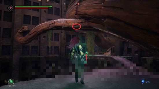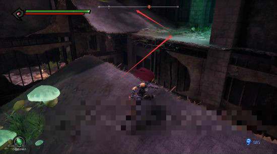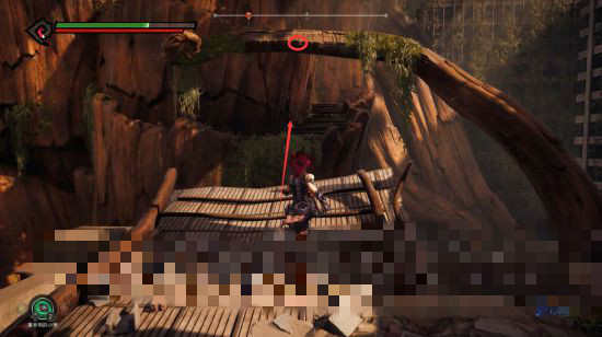 繼續(xù)沿著樹根前行,來到終點(diǎn),跳到左邊臺(tái)子上。