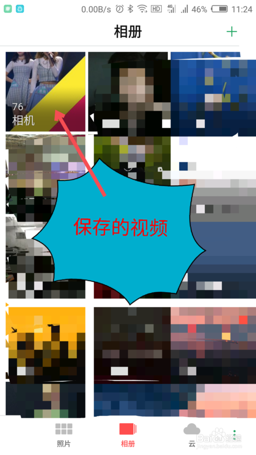 打開手機的圖庫軟件,查看相冊圖片的軟件,能看到剛才保存的視頻的縮略圖。