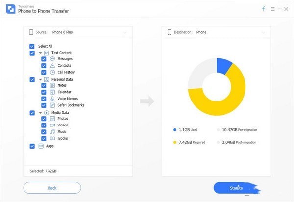 如果您需要將大量數(shù)據(jù)從一臺(tái)設(shè)備傳輸?shù)搅硪慌_(tái)設(shè)備, Tenorshare itransgo是您的最佳選擇??梢栽?分鐘內(nèi)完成128GB數(shù)據(jù)的完整傳輸。