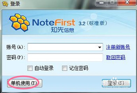 一、導(dǎo)入文件的方法打開(kāi)notefirst快捷方式后,進(jìn)入登錄界面,用戶名和密碼的使用用戶名密碼登錄。沒(méi)有就選擇“單機(jī)使用”,進(jìn)入軟件界面。