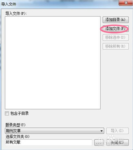 查看界面左下方的編輯菜單有“文獻(xiàn)管理”這一項(xiàng),點(diǎn)擊后,上方的“導(dǎo)入文件”會(huì)顯示可點(diǎn),點(diǎn)擊“導(dǎo)入文件”。