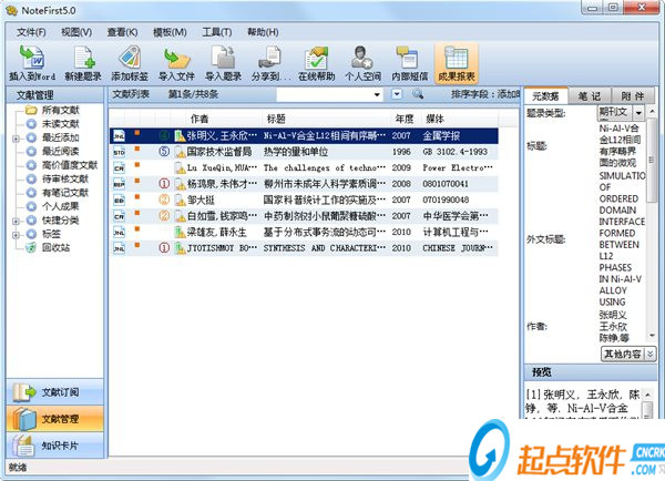 NoteFirst文獻(xiàn)管理器可以幫助您在電腦上下載多種行業(yè)的刊物,通過(guò)內(nèi)置的數(shù)據(jù)庫(kù)以及豐富的在線管理功能,可以直接將您定期閱讀的刊物同步到軟件上保存,支持在線下載文獻(xiàn),支持通過(guò)網(wǎng)絡(luò)搜索文獻(xiàn),并且可以在軟件上關(guān)注某一個(gè)行業(yè)的專家研究成果,將其發(fā)布的文獻(xiàn)資源保存在您的軟件中;NoteFirst文獻(xiàn)管理器也具有網(wǎng)頁(yè)版本,可以在兩種平臺(tái)上管理文獻(xiàn),并且支持添加RSS、在線幫助、個(gè)人中心、個(gè)人空間、內(nèi)部短信等輔助功能。