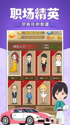 1、眾多職場精英等你來招募,經(jīng)營自己的公司;2、通過運用各種商業(yè)手段,擴大公司的規(guī)模;