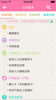 辦事導(dǎo)航—按時間順序為用戶提供辦理懷孕、生產(chǎn)、育兒過程中需要辦理證件的相關(guān)信息,及面向孕婦、兒童所提供的福利詳情。