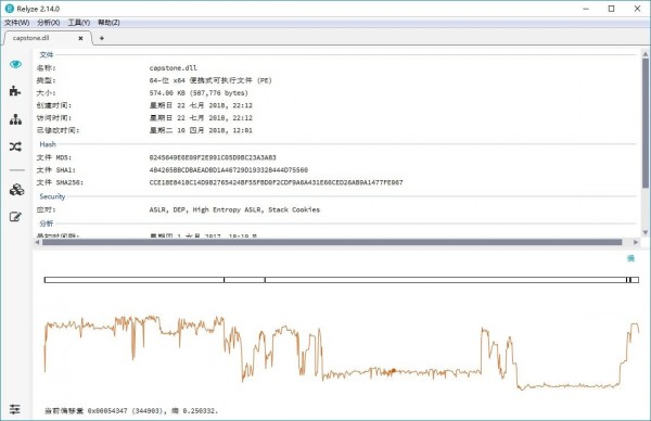 使用熵圖來識別打包或加密的數(shù)據(jù)以及其他異常。熵圖覆蓋相應的文件部分并且是交互式的,因此您可以導航到結(jié)構(gòu)或代碼視圖以了解更多信息。
