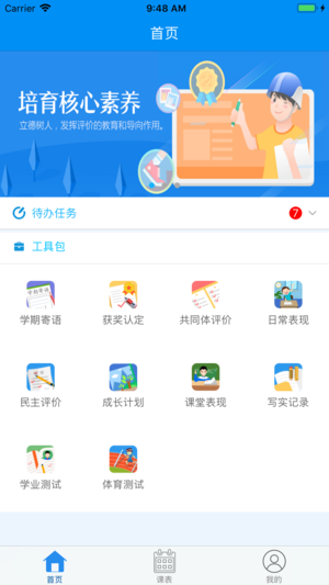 主要功能包括寫實(shí)記錄、共同體評(píng)價(jià)、日常表現(xiàn)評(píng)價(jià)、民主評(píng)價(jià)、獲獎(jiǎng)?wù)J定、成長(zhǎng)計(jì)劃、學(xué)業(yè)測(cè)試、民主評(píng)價(jià)、體育測(cè)試、學(xué)期寄語等。