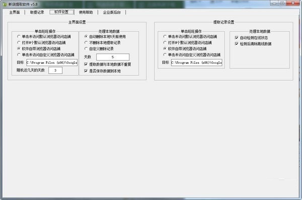 新店提取軟件5.8版 發(fā)布時(shí)間:2018-12-03,增加了保存數(shù)據(jù)功能新店提取軟件5.7版 發(fā)布時(shí)間:2018-07-11,增加是否有寶貝、消保、信譽(yù)