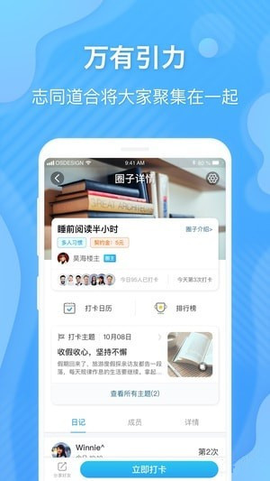 社區(qū)查看所有人的打卡狀態(tài),學(xué)樹(shù)習(xí)慣app更好的促進(jìn)大家互相成長(zhǎng)!