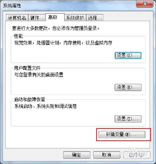 2、在高級(jí)系統(tǒng)設(shè)置里面,選擇“環(huán)境變量”,如下圖所示: