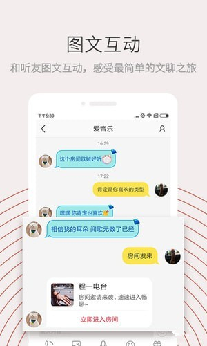 在房間和聽友圖文互動,暢所欲言,感受最簡單的文聊之旅。