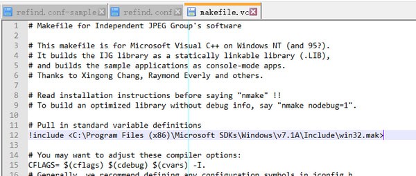 3、找到makefile.vc這個(gè)文件,打開(隨便一個(gè)文本編輯器)找到這一行