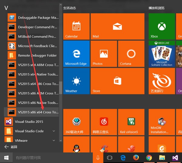 4、準(zhǔn)備編譯,我用的是VS2015命令提示符,不要選ARM的