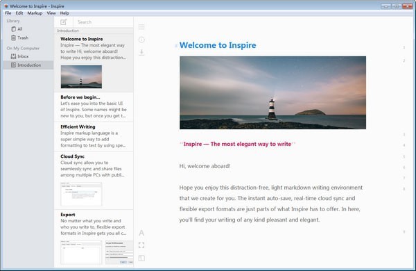 激發(fā)靈感,創(chuàng)造一個(gè)無干擾,輕松標(biāo)記的寫作環(huán)境,提高您的生產(chǎn)力。從簡(jiǎn)短的筆記到博客文章,再到偉大的小說,你關(guān)注的是內(nèi)容,而靈感則幫助其他內(nèi)容。啟發(fā)是專為最大的生產(chǎn)力。自由分心,重量輕,干凈的界面讓你專注于寫作。