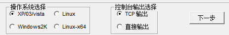 在【操作系統(tǒng)選擇】中確認(rèn)自己的系統(tǒng)型號(hào),【輸出選擇】里選擇【TCP輸出】,點(diǎn)擊【下一步】。