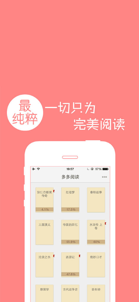 可以根據(jù)您的閱讀習(xí)慣設(shè)置多種不同的閱讀主題(比如左手操作,被窩主題,地鐵主題等),在不同的閱讀環(huán)境下隨時切換最適合的閱讀方式。