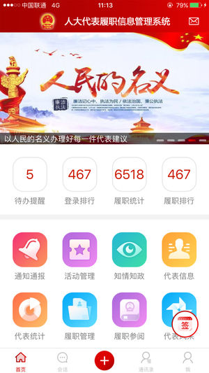 代表履職app自動統(tǒng)計代表履職信息,為日后代表連選、連任提供重要的參考依據(jù)。