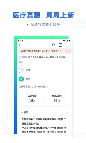 醫(yī)療真題,周周上新:配備獨(dú)家專(zhuān)業(yè)解析智能評(píng)估,知己知彼:貼合考情隨時(shí)模擬