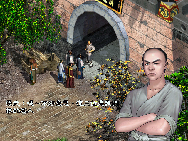 來到江夏鎮(zhèn)郊外(在此可多練一些級),往右下角走就來到鎮(zhèn)門邊,剛想進鎮(zhèn)時就被守衛(wèi)叫住,說這里的規(guī)矩一到時間就不得入內,這時張武走過來,當著守衛(wèi)的面硬行把幾人帶入鎮(zhèn)里的家中。安排幾人休息時,守衛(wèi)就去報告胡德清,他是這個鎮(zhèn)大財主,他叫手下龐都頭帶些人去張家把幾個陌生人帶來。龐都頭等人來到張家,張武不愿交出人來,胤祥就單獨和幾個手下打了起來,打敗龐都頭的手下后(祥可學會“血刃殺”),眾人又一起對付龐都頭的手下(這里一共要連續(xù)打三場)。打完后(禎可學會“游龍戲水”,李衛(wèi)可學會“伏犬拳法”,張武可學會“龍影拳”),胡德清出現(xiàn),他命幾人最好在明天之內離開此處,否則就不客氣,眾人聽后,張武一家也只有隨胤禎幾人回京城去住了。