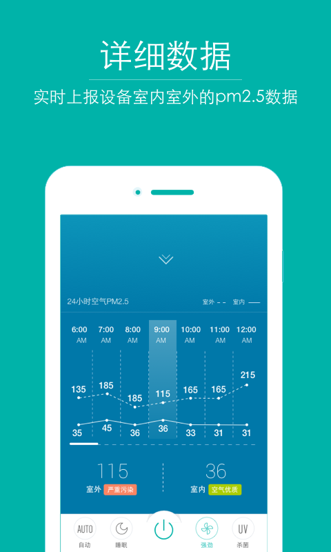 數(shù)據(jù)掌握空氣質(zhì)量:它可以實時顯示室內(nèi)、外PM2.5指數(shù),室、內(nèi)外空氣質(zhì)量指數(shù)和等級。讓你可以隨時了解室內(nèi)空氣質(zhì)量。
