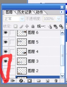 五、接下來是你想要哪張圖片在前面,你就在哪張圖片前面點(diǎn)亮眼睛。(注:打開Imageready的時(shí)候所有的圖層都是隱藏的)