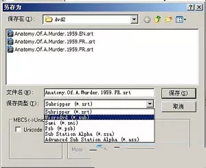 1.用Vobsub_Subresync打開(kāi)srt字幕,左上save as...,彈出另存框,下面保存類(lèi)型下拉,選*.sub,保存