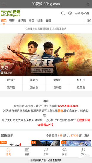 98視頻app是一款非常不錯(cuò)的手機(jī)線上影視觀看軟件 ,該軟件為用戶提供了海量的優(yōu)質(zhì)影視資源,全部免費(fèi)觀看,用戶可以在線找尋自己心儀的視頻,一鍵點(diǎn)播線上觀看,給用戶帶來一種至尊影視體驗(yàn)。98視頻是一款專為愛看影視電視劇的朋友打造的vip觀影神器。采集優(yōu)化簡單版本,點(diǎn)擊網(wǎng)站即可觀看,沒有任何邀請(qǐng)機(jī)制,另外新增了超清播放線路,提升體驗(yàn),不再為了視頻會(huì)員而苦惱。