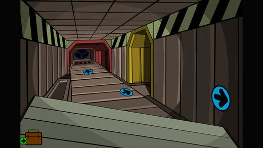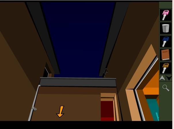 9、點右上箭頭,點天花板上的通風口,進入天棚,點右側箭頭,點下面箭頭,點向右的箭頭,進入黃色區(qū)域,點地上的通風口2次,進入醫(yī)生房間的上方。