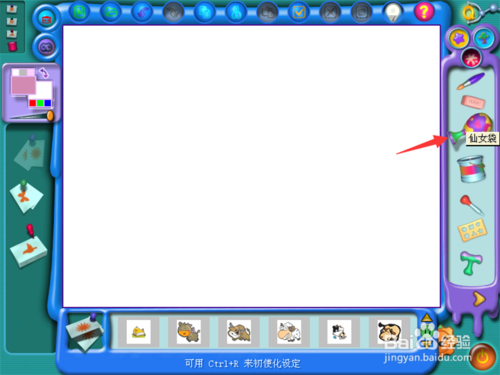 2、在打開的金山畫王界面點(diǎn)N按鈕,新建空白畫布,再點(diǎn)右側(cè)的仙女袋。