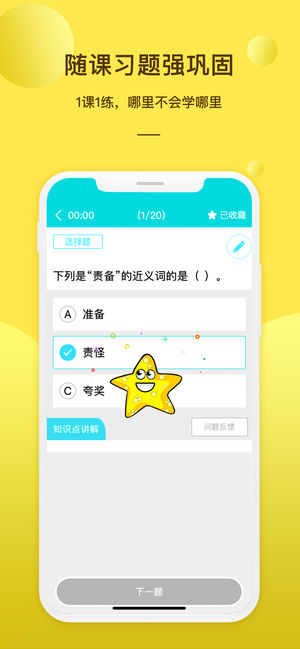 2、同步課程:全國小學(xué)課本同步全覆蓋,“同步資源”、“同步習(xí)題”、“同步檢測”三大板塊緊緊圍繞的課堂教學(xué),提供教學(xué)、練習(xí)、檢測一體化學(xué)習(xí)服務(wù);