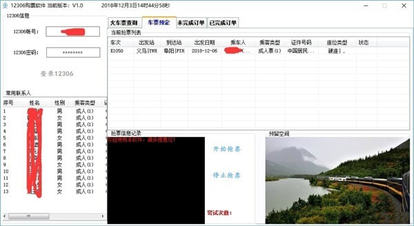 12306購票軟件是一款由網(wǎng)友自制的電腦搶票軟件。這款軟件界面清爽,其主要功能是為用戶提供專業(yè)強大的自動訂票服務,支持掛機操作,能夠24小時全方位在線,幫助你在第一時間搶到車票。