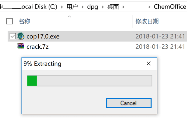9、安裝完成后,把dll補丁CambridgeSoft.ChemOffice.ChemDrawExcel.LibChemDrawWrapper.dll和破解補丁chem3d.--.chemdraw.--.chemfinder.--.chemfinderforoffice-patch.exe復制到安裝目錄"C:\Program Files (x86)\PerkinElmerInformatics\ChemOffice2017\ChemDraw\"。不需要替換