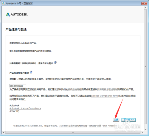 關(guān)閉后返回下圖頁(yè)面并在此點(diǎn)擊激活,接著再次輸入序列號(hào)和密鑰,如圖所示。