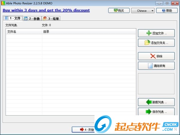 選擇1-FILES,將照片導(dǎo)入==點(diǎn)擊文件添加===將文件導(dǎo)入選擇2-PARAMETERS,設(shè)置自己需要的壓縮參數(shù)