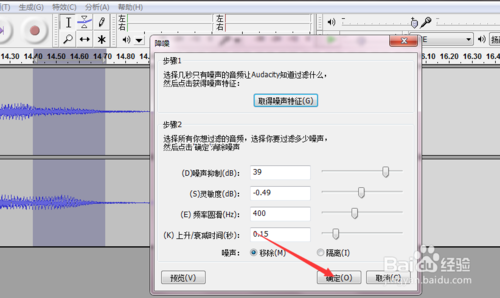 選擇后我們根據(jù)聲音噪聲的大小來調(diào)數(shù)值,然后點擊取得噪聲的特征
