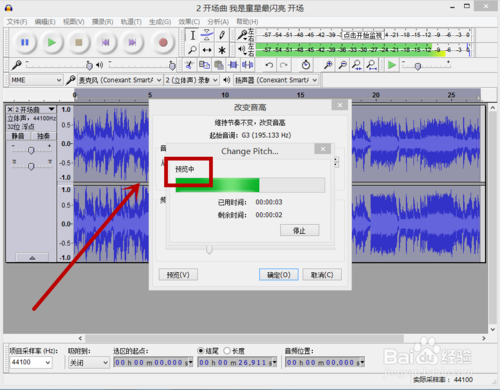 9、點擊"改變音高“對話框中的確定即可。