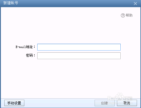 5、在最下方有一個新建選項,我們可以點擊它來新建賬戶。點擊新建之后就出現(xiàn),這樣的窗口,我們輸入我們的QQ郵箱賬號,點擊創(chuàng)建即可