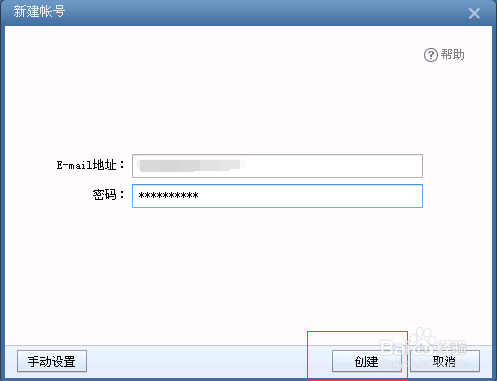 2、輸入郵箱地址和密碼,點創(chuàng)建,成功后,點完成