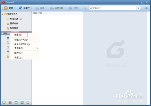 要收取郵件 ,右鍵單擊郵箱帳戶,點收取,即可收取最新的郵件