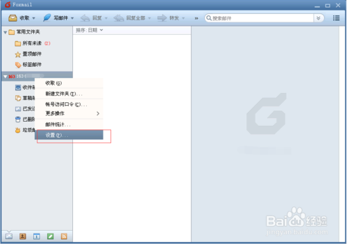 右鍵單擊郵箱帳戶,點設(shè)置