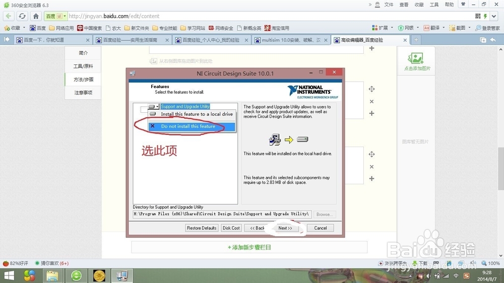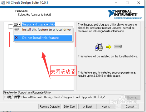 在彈出的下拉菜單中選擇“Do not install this feature”