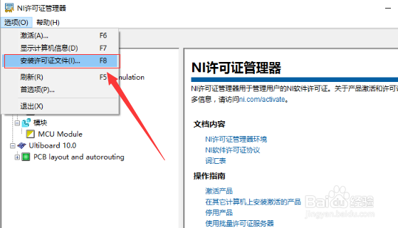 按如下步驟操作:開始菜單-->所有程序-->National Instruments-->NI License Manager(這是NI許可證管理器)-->選項(xiàng)-->安裝許可證文件-->選擇第8步生成的許可證-->關(guān)閉窗口。恭喜!安裝完成。