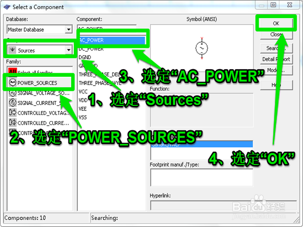 依然在同樣的界面依次選定"Resources">>"POWER_RESOURCES">>"AC_POWER">>"OK"選定交流電源。