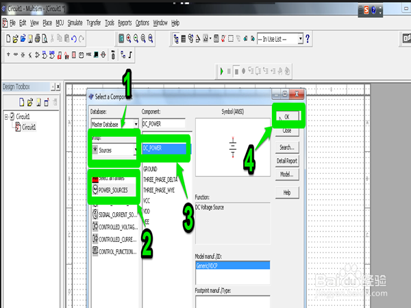 依然在同樣的界面依次選定"Resources">>"POWER_RESOURCES">>"DC_POWER">>"OK"選定直流電源。