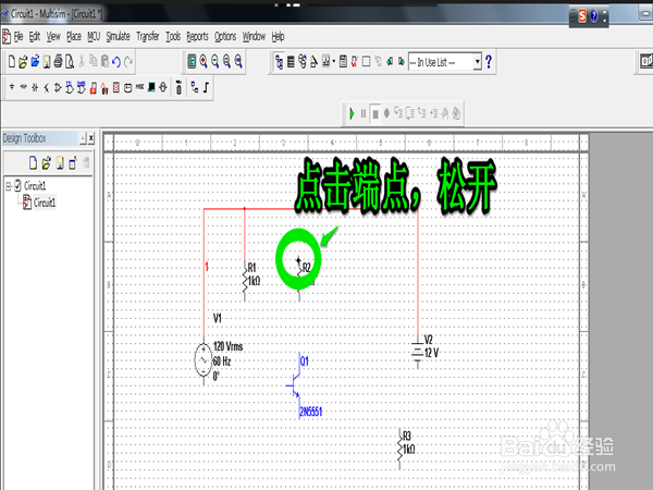 單擊元件一端,松手,這時(shí)出現(xiàn)連線,在想要與之連接的連接點(diǎn)再次點(diǎn)擊,則表示連好了。