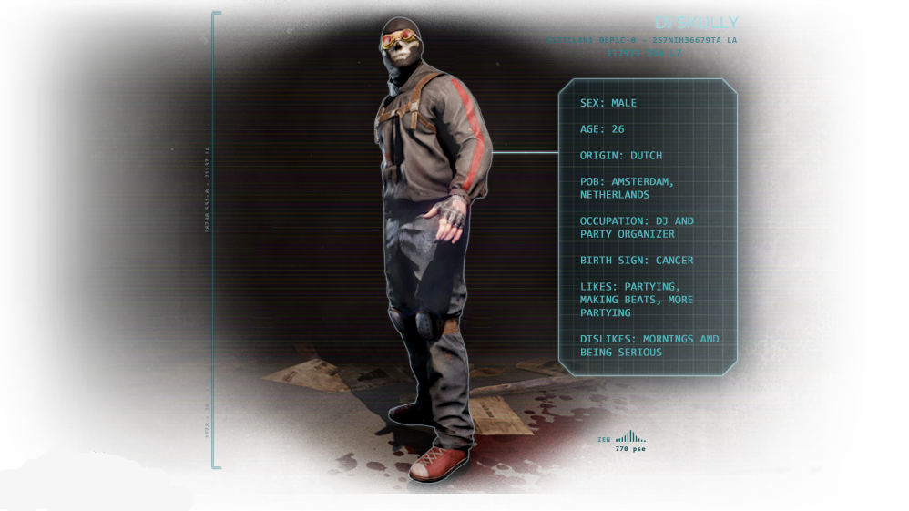 當(dāng)疫情爆發(fā)后,他獨(dú)自一人就解決了一頭在北倫敦庇護(hù)所的瘋狂怪物。當(dāng)Zed們打算吃掉所有人時(shí),說(shuō)時(shí)遲那時(shí)快,他就馬上逃亡,多虧有一副好體質(zhì),他才能活命。施庫(kù)里經(jīng)常闖禍,而且他的天性是不會(huì)改變的。但他很擅長(zhǎng)引誘怪物。