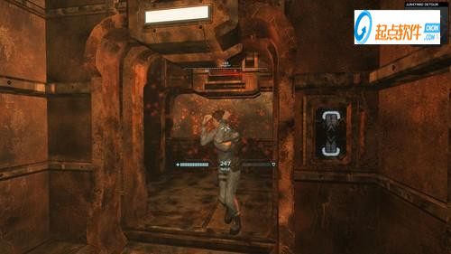 上來航母破損嚴(yán)重,需要手動啟動電源。找到上圖的工程區(qū),先向下就對了。