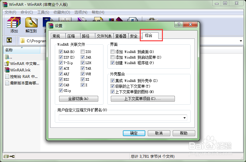 在“設(shè)置”這個頁面找到一個名為“綜合”的選項卡。在這里你有兩個選擇:1.將winrar 64位 破解版的右鍵菜單整合到一個菜單項下。2.精簡winrar的右鍵菜單,去掉平時基本不用的選項。當(dāng)然你也可以兩個方式結(jié)合起來使用,效果更顯著。下面我們就分別來描述下如何進(jìn)行操作。