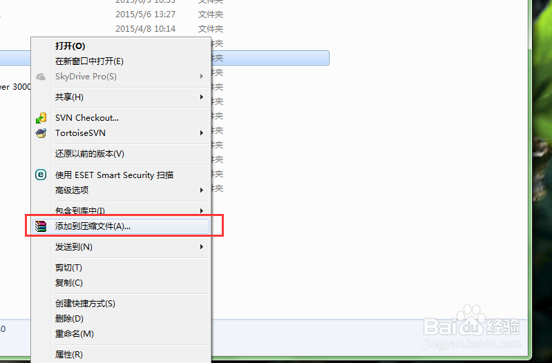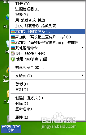 右鍵點擊要加密的文件夾,在彈出的快捷菜單中選擇“添加到壓縮文件”命令